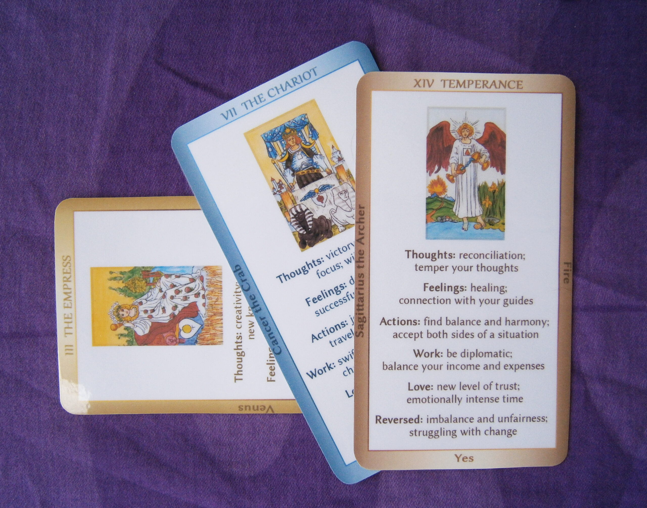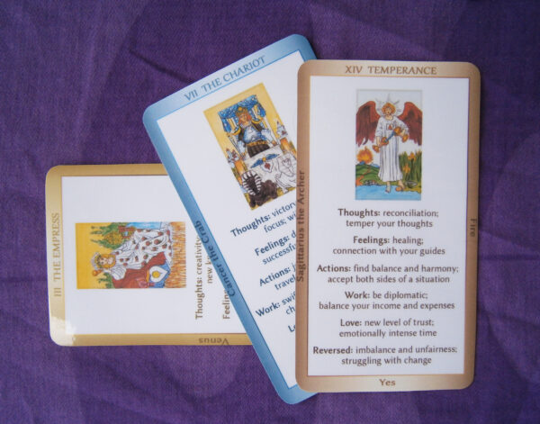 The cards have key meanings that reply to the main themes of reading – love, money, career, ongoing events.